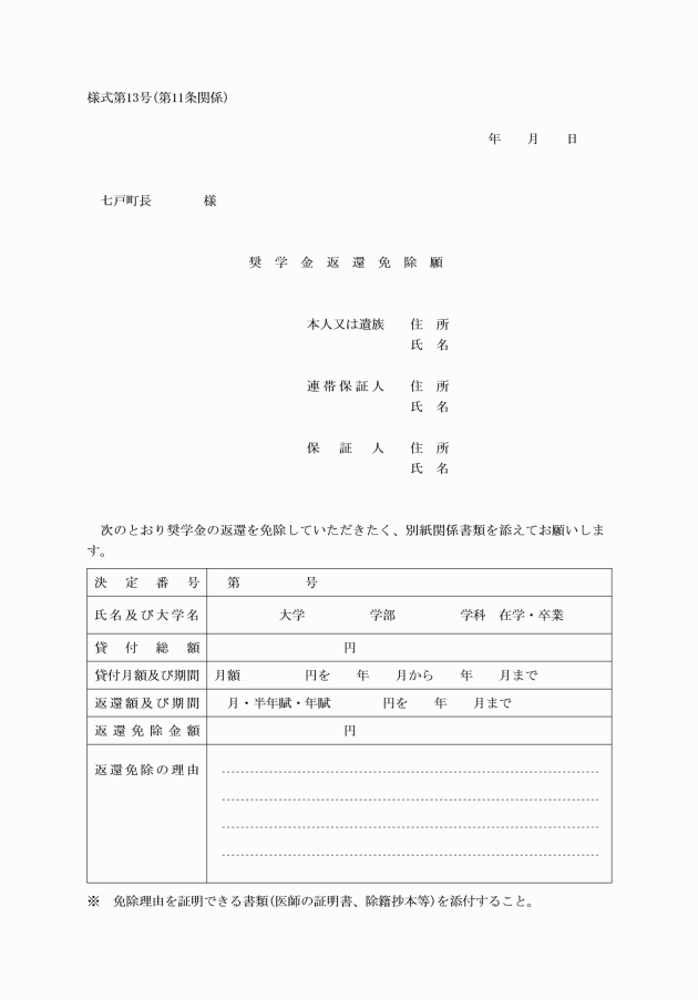 (4) 奨学金の貸付期間を延長するとき。 奨学金貸付期間延長願(様式第7号)