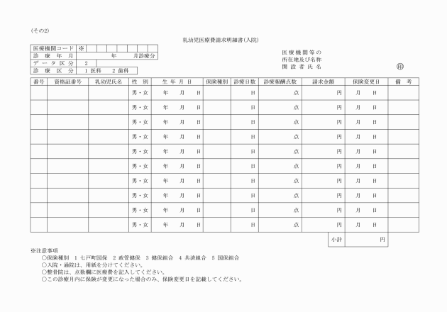 第8条 受給資格者は、条例第7条第1項の規定により乳幼児医療費の給付を受けようとするときは、医療の給付を受けた日の属する月の翌月の初日から起算して11月以内に、乳幼児医療費給付申請書(様式第6号)に医療機関等の発行する領収書を添えて、町長に申請しなければならない。