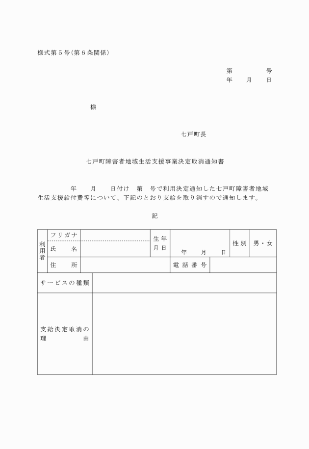 2) 利用決定し、交付した七戸町障害者地域生活支援給付費等支給・利用決定通知書(第3条第12号関係様式第2―1号)をもって利用者証とし、支給量の範囲内において直接事業者に申し込みを行い、サービスを利用する。
