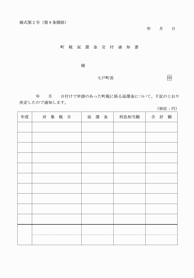 第8条 返還金の支払いを受けようとする返還対象者は、町長に対し返還金に関する申請書を提出するものとする。