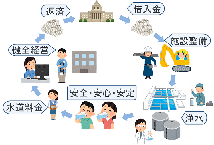 この借入金を水道料金収入の中から返済しながら、水道事業の健全な運営に努めています。